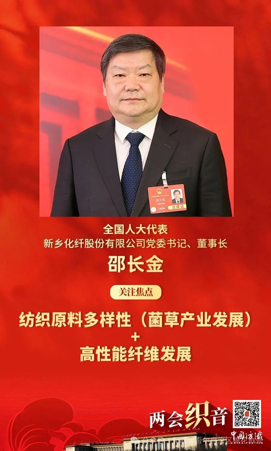 两会织音丨全国人大代表邵长金:菌草是纺织绿色原料的理想来源,建议加快推动发展