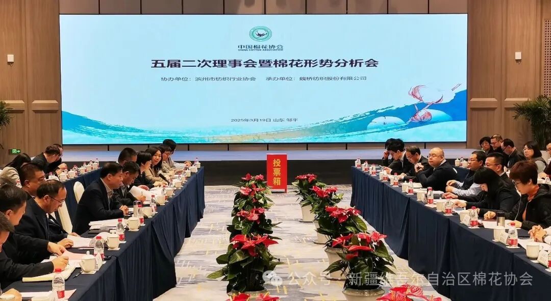 3月19日,中国棉花协会在山东邹平召开五届二次理事会暨全国棉花形势分析会。本次会议由滨州市纺织行业协会协办,副会长单位魏桥纺织股份有限公司承办。100余名中国棉花协会理事单位及商务部外贸司、中国农业发展银行粮棉油部等相关部门负责人参加了会议。会议表决通过了中国棉花协会副会长,中华棉花集团有限公司董事长刘勇当选协会五届二次理事会轮值主席,审议并投票通过了协会五届二次理事会工作报告、2024年度财务报告、秘书处办事机构及协会分支机构相关负责人变更的报告、修订中国棉花协会相关规章制度的报告。会议总结了2024年度新棉收购情况,分析了新年度棉花生产形势及棉花、纺织购销形势,就新一轮目标价格政策、宏观调控政策提出意见建议。最后,中国棉花协会会长王建红做了总结发言,并就上届理事会上代表们提出的棉花进口政策、商业储备体系、适度恢复内地棉花面积、中国可持续棉花项目进展情况等意见和建议一一做了说明,表示将认真研究理事们在本次会议上提出的问题,并积极向有关部门反映。