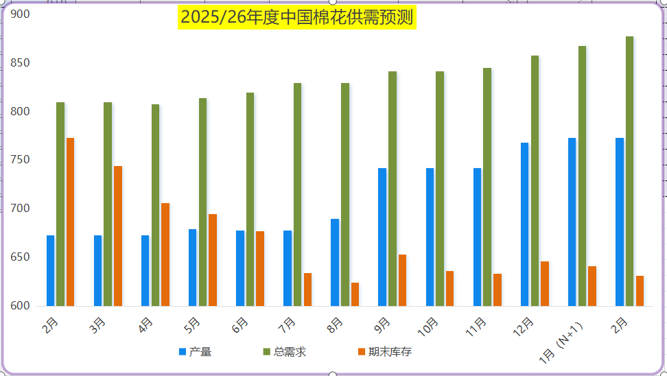 ·全球供需:USDA给出25/26年度中国棉花消费849万吨,较国内测算低约30万吨;中国棉花产量或再调增8-10万吨,期末库存或再减20万吨。