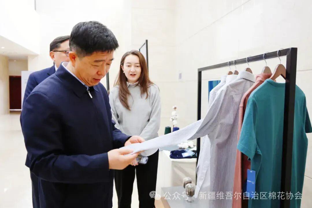 签约仪式前,鄂宏达同溢达中国控股有限公司董事长曾崧及师市纺织企业负责人参观了无水印染成衣样品,并进行座谈交流。鄂宏达表示,师市是全国重要优质棉生产基地,已形成了“植棉—纺纱—织布—印染—成衣”全产业链。近年来,师市立足棉花资源优势,聚焦全产业链发展,打通纺织服装产业上下游,统筹资金、政策、技术等要素保障,大力推动纺织服装产业发展。希望此次签约的项目,助力师市纺织服装产业高质量发展,擦亮“中国棉纺织名城”品牌。师市也将进一步优化营商环境,集聚各类生产创新要素,与各企业携手,发展高端纺织品和服装产业,提升纺织产业链水平,推广更新先进的纺织技术和设备,推动师市纺织服装产业再创辉煌。 溢达中国控股有限公司董事长曾崧介绍了企业无水印染技术。他表示,依托新疆优质棉花资源和良好的产业基础,新疆纺织服装产业发展前景广阔。此次无水印染技术项目落地八师石河子市,有助于推动八师石河子市乃至新疆纺织服装产业的绿色转型升级。也希望同八师石河子市本地服装纺织企业加强交流,发挥自身在科技、人才等方面优势,助力八师石河子市纺织服装产业发展。